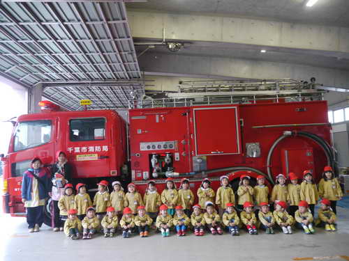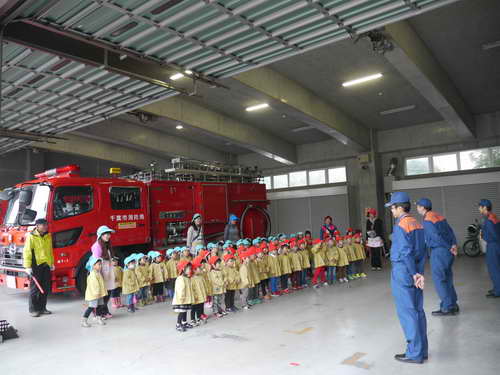 園バスに乗って元気よく年少組さんで『稲毛消防署』に行ってきました