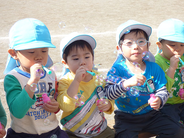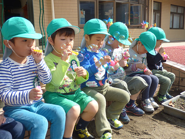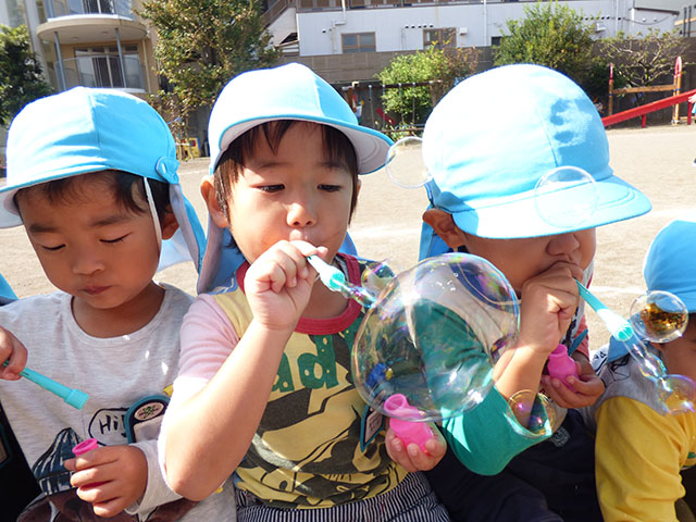 今日は、年少組でシャボン玉