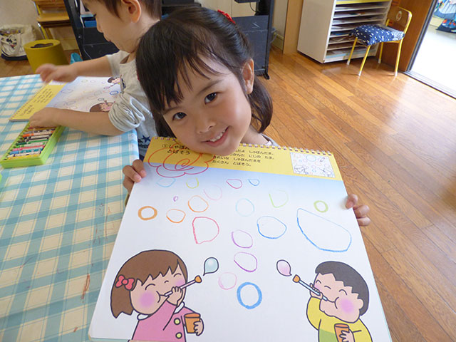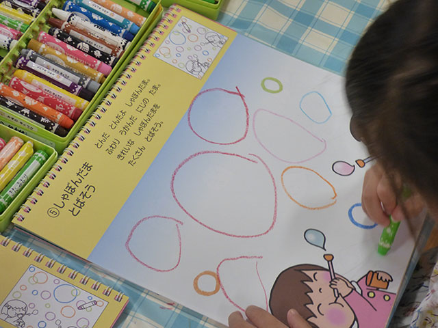 クレヨン遊びのシャボン玉を