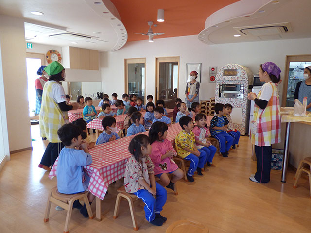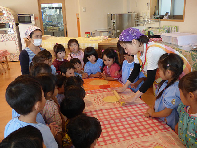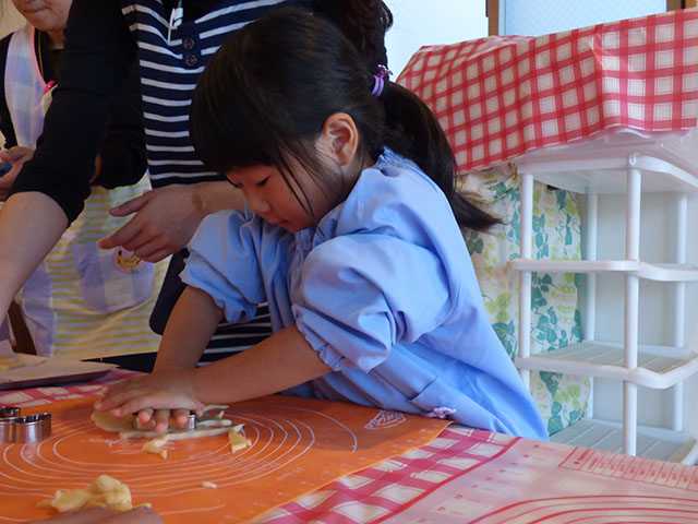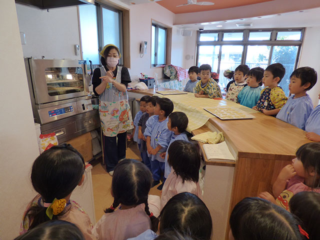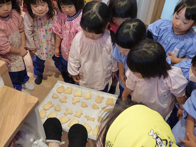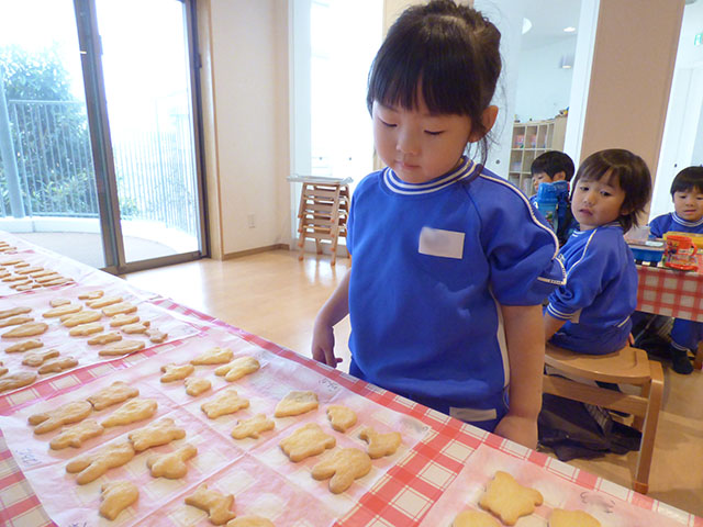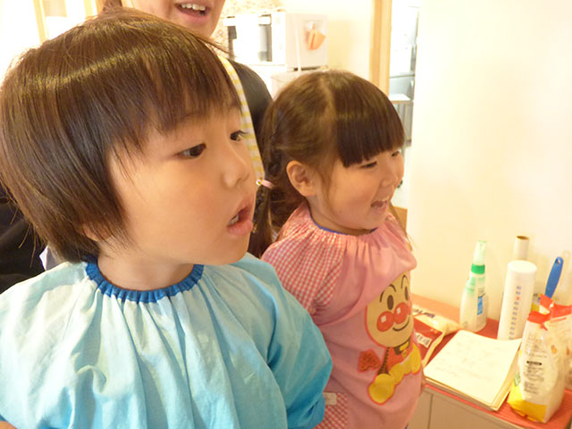 材料の説明や作り方を聞きながらも、驚いたり、喜んだりと楽しくクッキー作りを行いました