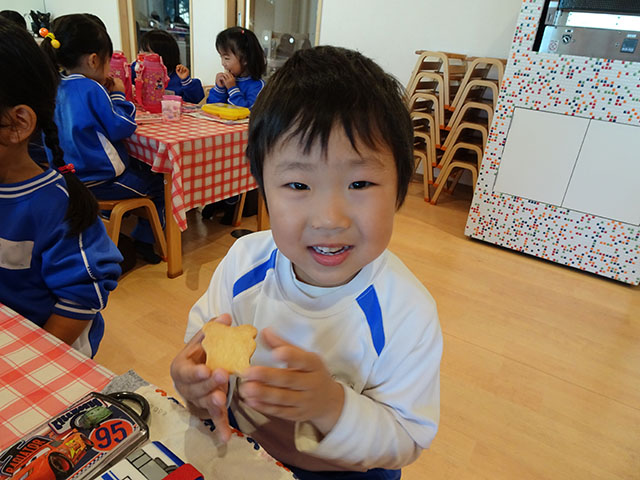 一番お気に入りのクッキーを食べるお友達・一番のお気に入りをお土産にするお友達、と