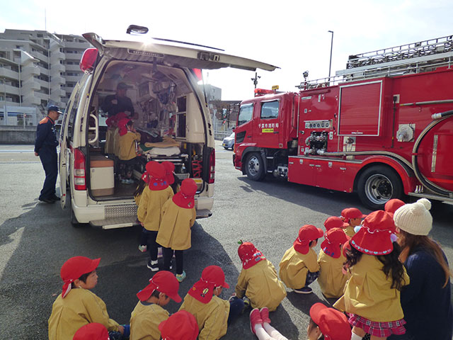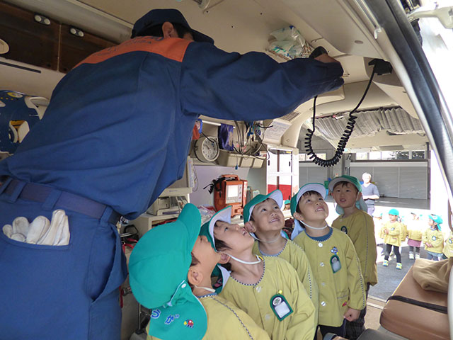 今日は、年少組が消防署