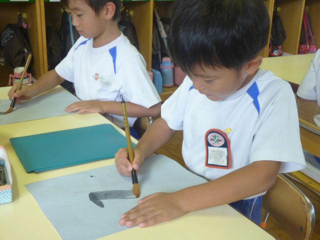 今日は、年長組さんの書き方教室がありました運動会練習の時期ですがしっかりと落ち着いて活動を行います魔法の言葉を言いながら指でしっかり書き順を覚えます背中を伸ばし、足を床につけ立腰を保ちますかっこ良い姿勢ですゆっくりと落ち着いて文字を書きます大きくて堂々とした立派な文字運動会練習では思い切り体を動かし、書き方教室では落ち着いて取り組むこの動と静のメリハリある生活が、心も体も成長させてくれ、充実した1日を過ごすことになりますねまた来週からも元気いっぱいに過ごしましょう~