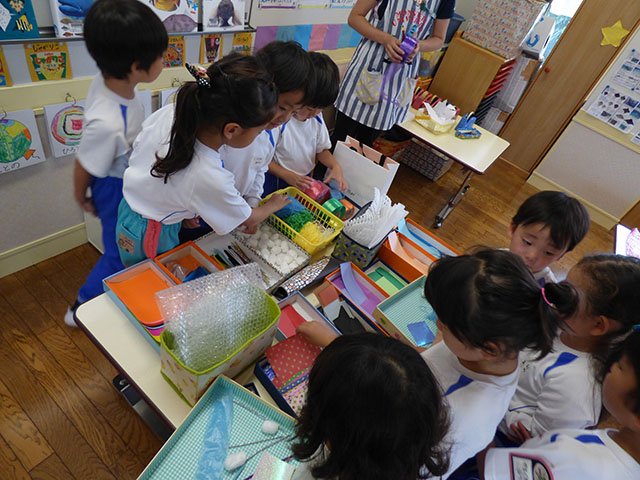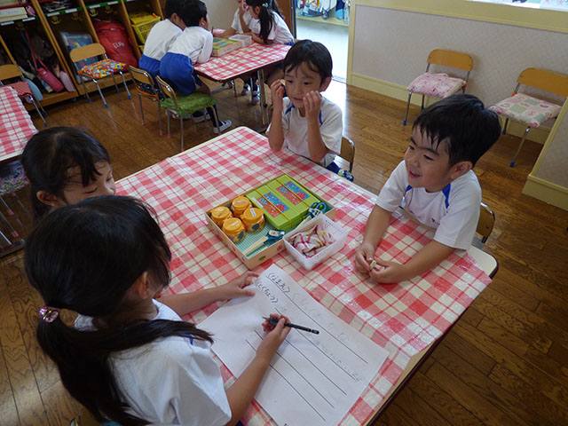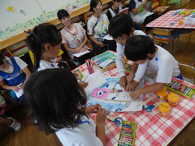 今日は、お友達と相談をしながら、自由な発想で海の生き物