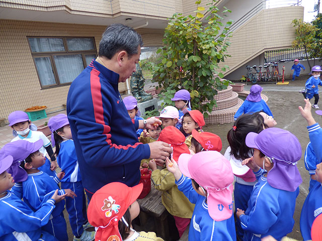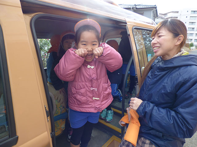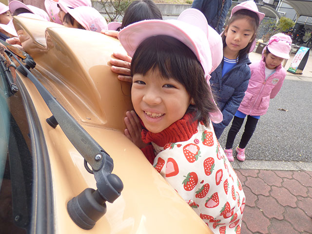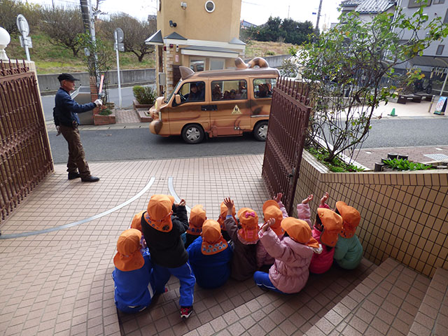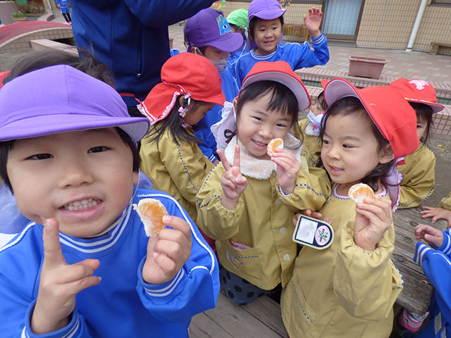 今日は年長組さんのネコバスツアーグループに分かれてネコバスに乗り込みます出発いってらっしゃ~い園の周りをぐるっと回るネコバスツアー帰ってきたーおかえりなさい~ネコバスツアー楽しいニャ~のネコポーズ楽しかったニャ~最後はネコバスとの触れあいタイムみんなでなでなで・・・するとニャーと返事をしてくれましたよ可愛い~乗せてくれてありがとうそして、園庭ではまたまた美味しそうな物が・・・みかんいただきま~す甘くて美味しい~またまた冬の美味しい味覚でした ☆☆今日の給食☆☆・ひじきご飯・和風ハンバーグほうれん草添え・きゅうりとかにかまの酢の物・きのこのすまし汁・みかん