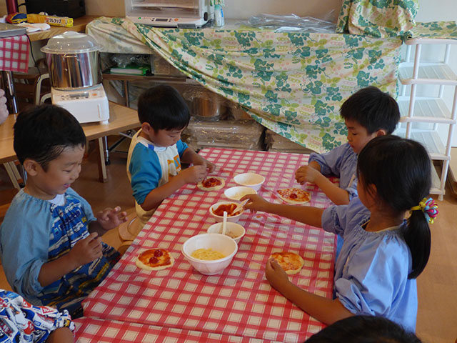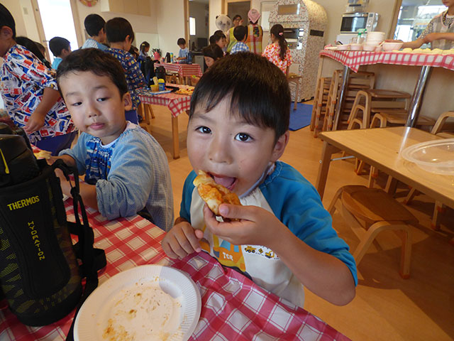 と言いながら、みんな大喜びでピザ作りを楽しんでいました