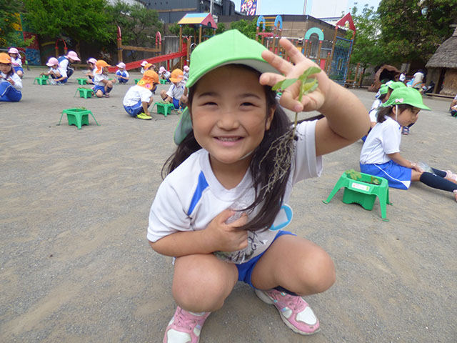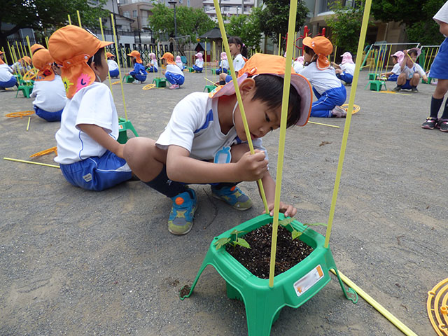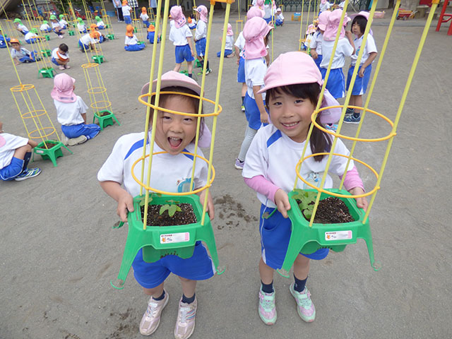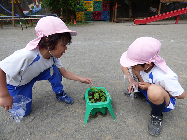 自分たちの植えた種が芽を出し、毎日水やりをしながら、成長への期待や喜びを味わっている