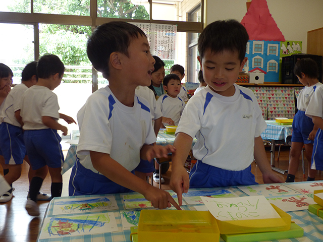 お友達の描いた絵を認め合い、体だけではなく、心も大きく成長した姿を見せてくれましたね