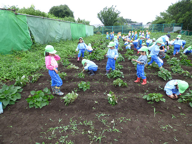 芋畑では雑草が・・・でも、つるが成長していることにビックリ