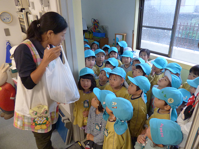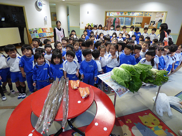 今日は、年少組・年中組が芋煮会の材料を買いに行きました![]()