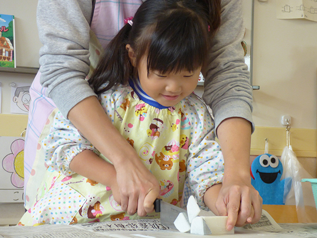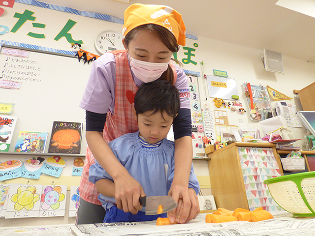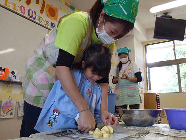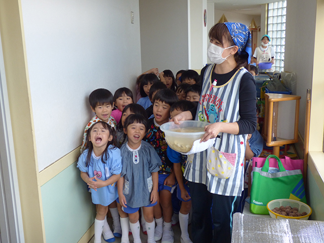今日の芋煮会では、普段は野菜が苦手なお友達も